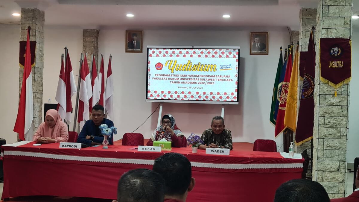 Sebanyak 89 mahasiswa Fakultas Hukum (FH) Universitas Sulawesi Tenggara (Unsultra) resmi menyelesaikan proses perkuliahan yang ditandai dengan pelaksanaan yudisium di aula WTC FH Unsultra, Selasa 25 Juni 2023.