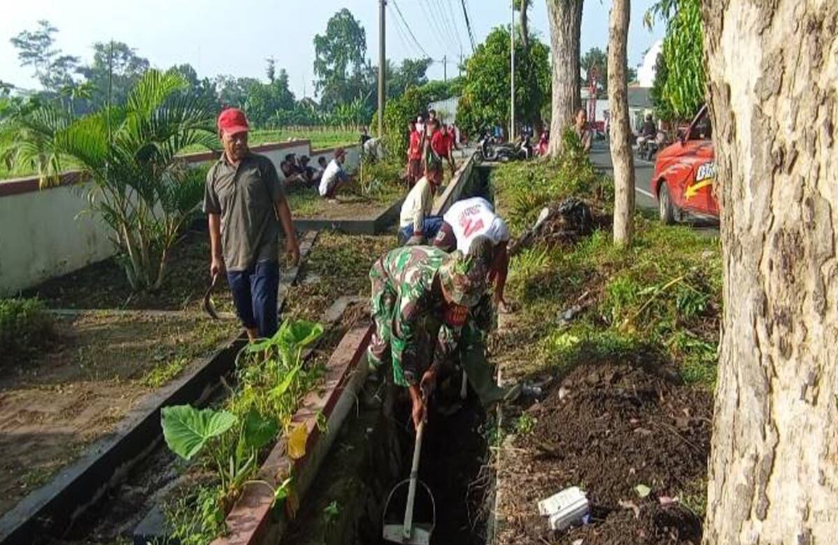 Kodesultra.id,Blitar — Babinsa Kelurahan Tanggung Koramil 0808/01 Sukorejo Kodim 0808/Blitar, Serma Dwiyono, menginisiasi kegiatan gotong royong.