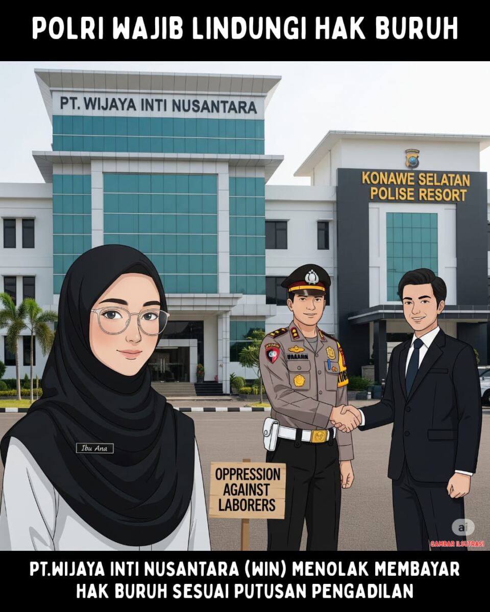 Dan sebagai anggota Polri, sudah seharusnya Kapolres Konawe Selatan turut membantu dan melindungi hak buruh, menegakkan hukum, meski yang dilaporkan adalah PT. WIN”