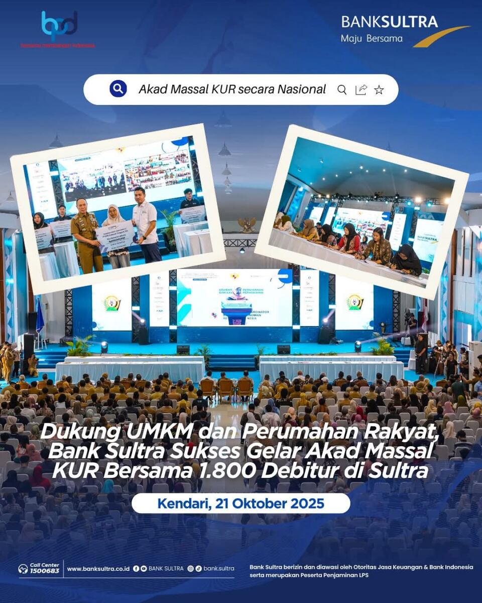 Sebagai bank pembangunan daerah, Bank Sultra terus berkomitmen menjadi mitra terpercaya dalam mendukung pertumbuhan ekonomi lokal melalui berbagai produk dan layanan pembiayaan, termasuk penyaluran Kredit Usaha Rakyat (KUR) yang berorientasi pada pemberdayaan sektor-sektor produktif.