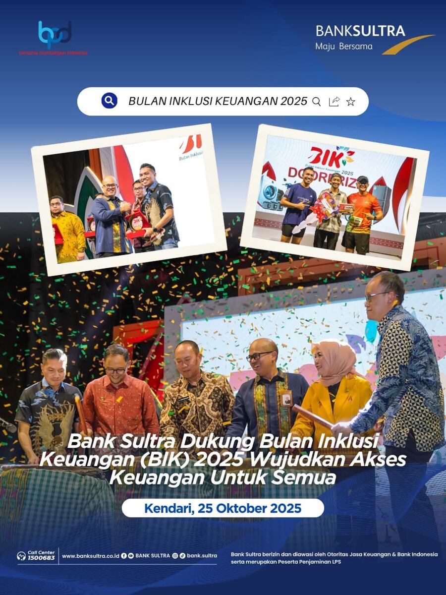 Kodesultra.Id, Kendari — Bank Sultra kembali menunjukkan komitmennya dalam mendukung program inklusi keuangan nasional dengan berpartisipasi aktif dalam kegiatan Bulan Inklusi Keuangan (BIK) 2025 yang diselenggarakan oleh Otoritas Jasa Keuangan (OJK) Sulawesi Tenggara pada tanggal 25–26 Oktober 2025 di Lapangan Eks MTQ Kota Kendari,”25/Oktober