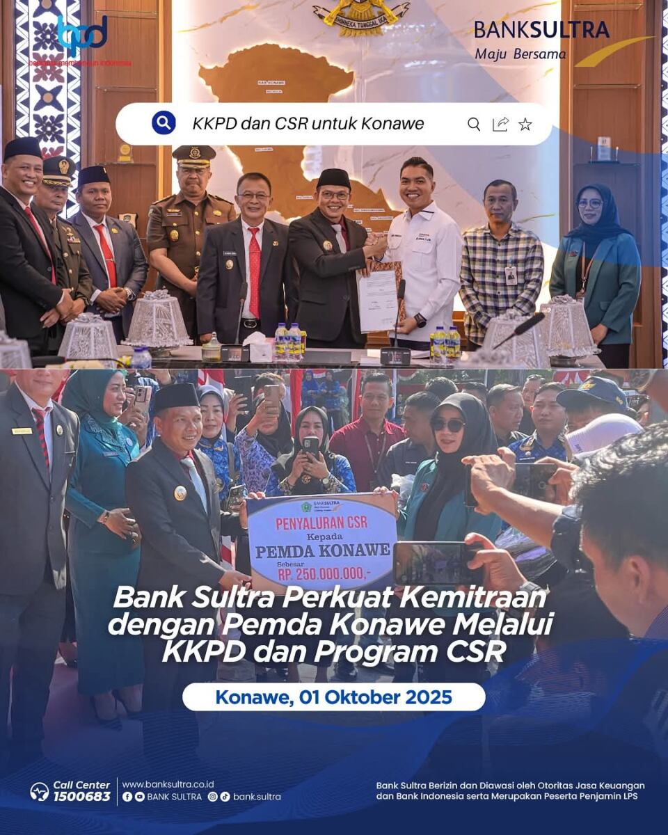 Kodesultra.Id, Konawe : Pemerintah Daerah Kabupaten Konawe bersama Bank Sultra resmi melakukan penandatanganan Memorandum of Understanding (MoU) terkait implementasi Kartu Kredit Pemerintah Daerah (KKPD),” 1 Oktober/2025