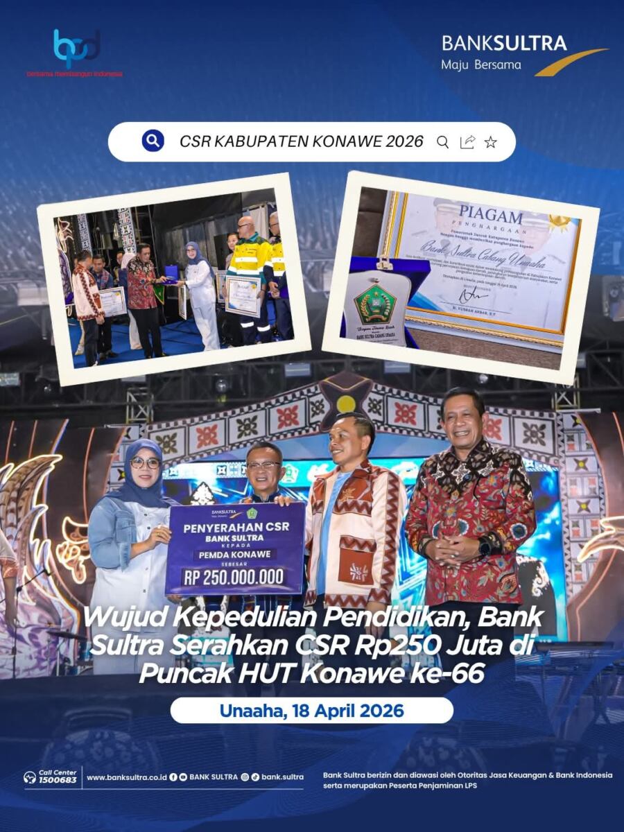 Dana CSR tersebut diperuntukkan bagi 625 siswa-siswi dari keluarga tidak mampu dan anak yatim di Kabupaten Konawe untuk tahun anggaran 2026. Masing-masing siswa akan menerima bantuan sebesar Rp400.000 yang disalurkan melalui pembukaan rekening tabungan SIMPEL di Bank Sultra Cabang Unaaha. Langkah ini sekaligus menjadi upaya Bank Sultra dalam mengedukasi literasi keuangan dan budaya menabung sejak dini kepada generasi muda.